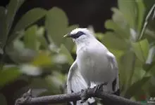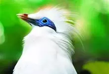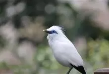 长冠八哥:是一种大型椋鸟,体长约25厘米,雌雄相似,外形俊朗,羽冠发达,眼睛四周和面部裸出,裸露部分为蓝色,全身羽毛纯白色,尾部和翼端的边缘呈黑色,脚灰色。全身白色,具较长冠羽,…全部>>