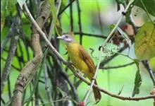 凤头雀嘴鹎:属小型鸟类,体长18-22厘米。嘴粗短、呈象牙色或乳黄色,前额和脸灰色,头顶黑色,有一朝前竖立的黑色羽冠。上体橄榄绿色,下体黄绿色,尾羽黄绿色具宽阔的黑褐色端斑。…全部>>