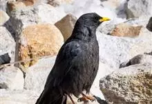 黄嘴山鸦是鸦科、山鸦属鸟类,体长38-42厘米。体形较细弱,黄色的嘴细而下弯,嘴亦较短。雌雄羽色相似。全身羽毛黑色沾褐具绿色金属光泽,尤以两翅和尾较明显。幼鸟腿灰色,嘴上黄色较少。…全部>>