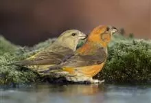 红交嘴雀:体重28-48克,体长145-175毫米。是燕雀科交嘴雀属的鸣禽。是一种小型的燕雀。雄鸟通体砖红色,上体较暗,腰鲜红色;翼和尾近黑色,头侧暗褐色;雌鸟暗橄榄绿或染灰色,…全部>>