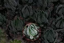 条纹十二卷 Haw.)是芦荟科十二卷属植物,为多年生肉质草本植物。植株高度10-15厘米,其呈莲座状生长;叶片紧密轮生在茎轴上,柔软多汁,呈长三角状披针形,极肥厚;叶面光滑、扁平,色深绿;叶背突起,…全部>>