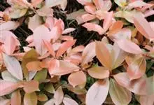 红叶石楠 是蔷薇科,石楠属杂交种,为常绿小乔木或灌木,乔木高可达5米、灌木高可达2米。叶片革质,长圆形至倒卵状、披针形,叶端渐尖,叶基楔形,叶缘有带腺的锯齿,花多而密,复伞房花序,花白色,梨果黄红色,…全部>>