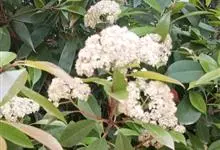 石楠 Kalkman),是蔷薇科石楠属的常绿乔木,高5~12米,株型紧凑,树冠圆球形。树枝为褐灰色;鳞片为褐色,没有毛;叶片革质,长椭圆至侧卵状椭圆形,有锯齿,新叶红色光亮。复伞房花序,白色小花,…全部>>