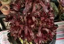 黑法师是景天科莲花掌属植物,自然界不存在分布。紫黑色的叶片呈莲座状层叠排列,给人以庄重神秘之感,观赏价值高。…全部>>