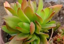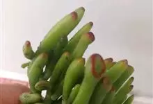 筒叶花月,是景天科青锁龙属的多年生草本植物。植株多分株,灌木状,茎较粗壮,圆柱形,表皮灰褐色;叶片肉质,互生,呈圆筒状,簇生于茎或分枝顶端,叶端呈斜截形,截面为椭圆形;花呈星状,淡白色;花期秋季。…全部>>