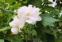 木芙蓉,锦葵科木槿属落叶灌木或小乔木。小枝上有细绒毛;叶片为卵状心形,托叶为披针形,常早落;花单生,花萼为钟形,花冠初为白色或淡红色,后逐渐变为深红色;果实为扁球形,有淡黄色的毛附着。花期8到10月。…全部>>