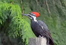 北美黑啄木鸟,Dryocopus pileatus ,啄木鸟科黑啄木鸟属的一种鸟类。身长约42厘米,体羽黑色,颈部有白色条纹,羽冠鲜红色,时常竖起。分布于北美地区,包括美国、加拿大、格陵兰、百慕大群…全部>>