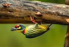 金喉拟啄木鸟,是须鴷科、拟啄木鸟属的鸟类。金喉拟啄木鸟为小型鸟类,体长19-24厘米。额深红色,头顶金黄色,后枕具一大块深红色斑,耳羽和头侧银灰色,上体草绿色,颏和上喉金黄色,下喉淡银灰色,…全部>>