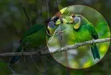 绿拟啄木鸟为鴷形目,须科,拟啄木属的一种。形较大拟啄木鸟略小,体长约260mm。头、颈及胸浅褐而具淡黄白色条纹;喉几为淡黄白色;身体余部草绿色。虹膜棕褐色,眼周裸露部黄色;嘴峰角黄色;跗跖和趾角黄…全部>>