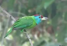 蓝喉拟啄木鸟,是须鴷科、拟啄木鸟属的鸟类。蓝喉拟啄木鸟为小型鸟类,体长20-23厘米。前额至头顶鲜红色,其上有一宽阔的黑色横带,将此红色分为前后二块;头侧、颏、喉蓝色,下喉两侧各具一红色点斑。…全部>>
