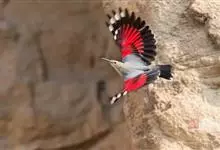 红翅旋壁雀:体重15-23克,体长120-178毫米。是一种体型略小的鸟类。尾短而嘴长,翼具醒目的绯红色斑纹。飞羽黑色,外侧尾羽羽端白色显著,初级飞羽两排白色点斑飞行时成带状。繁殖期雄鸟脸及喉黑色,…全部>>
