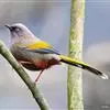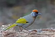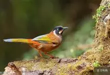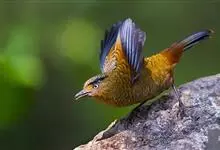 橙翅噪鹛:是噪鹛科、彩翼噪鹛属的中型鸟类,体长22-25厘米。头顶深葡萄灰色或沙褐色。上体灰橄榄褐色,外侧飞羽外翈蓝灰色、基部橙黄色,中央尾羽灰褐色,外侧尾羽外翈绿色而缘以橙黄色并具白色端斑。…全部>>