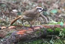 白颊噪鹛是雀形目噪鹛科噪鹛属鸟类,又称土画眉、小画眉、小噪鹃。成鸟额至头顶栗褐色,长眉纹、眼先和颊纹棕白色,眼后至耳羽深褐色,…全部>>