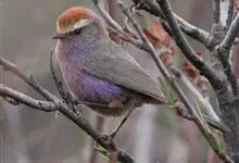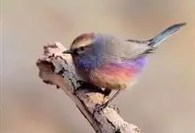 花彩雀莺:体长9-12厘米,是一种毛茸茸偏紫色的雀莺。顶冠棕色,眉纹白。尾长,羽毛松软。前额有一宽阔的眉纹淡黄色,头顶栗色或棕红色,有的具紫蓝色光泽。背灰色,腰和尾上覆羽辉紫蓝色,飞羽灰褐色。…全部>>
