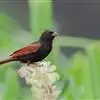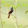 凤头鹀:属小型鸣禽,体重21-31克,体长134-175毫米。以头顶的细长羽冠为特征,雄鸟全身几乎均为黑色具蓝色光泽,两翅和尾以及尾上覆羽栗红色。雌鸟具短的褐色羽冠,上体暗橄榄褐色,…全部>>