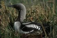 黑喉潜鸟为潜鸟目下的大型水禽,体长56-75厘米,体重雄性3.3-3.8千克,雌性2-3.1千克。个体较红喉潜鸟大,嘴直,颈粗而长,常弯曲成优美的S型。…全部>>