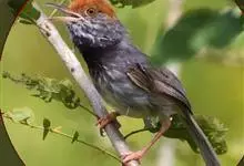 黑喉缝叶莺:体长11.5厘米,是一种小型的顶冠棕色、腹部白色的莺。尾甚长而常上翘,臀黄色,具特征性的偏黑色喉,上体橄榄绿色,头侧灰色。雌鸟色暗,头少红色且喉少黑色。与长尾缝叶莺的区别在后顶冠亦为棕色,…全部>>