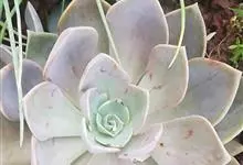 蓝石莲是景天科、拟石莲花属的多肉植物。茎部粗壮,成熟植株茎部木质化。叶片莲座型密集排列,株径不会很大,叶片相对较薄,常年绿色,表面布有白色粉末,中部凹陷,呈倒水滴状。叶尖较尖,叶缘光滑无褶皱,…全部>>