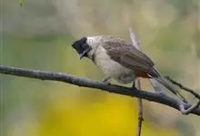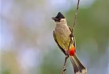 黄臀鹎,又称黄屁屁,是雀形目鹎科鹎属鸟类。成鸟额、头顶至枕部黑色,无明显冠羽,眼先和眼周亦为黑色,耳羽灰褐色,上体土褐色,尾暗褐色具不明显横斑,翼暗褐色,飞羽具淡色羽缘;下体颏、喉白色,…全部>>