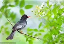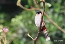 黑喉红臀鹎是雀形目鹎科鹎属鸟类,别称有黑头公、红臀鹎。头顶黑色具光泽;后颈、肩和背暗褐具灰色狭缘;腰羽几纯暗褐,尾上覆羽近白色,羽端浅灰褐色;尾羽褐黑,中央尾羽具狭窄的白色端斑,…全部>>