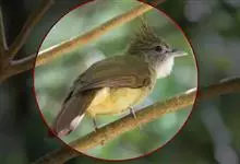 凤头雀嘴鹎:属小型鸟类,体长18-22厘米。嘴粗短、呈象牙色或乳黄色,前额和脸灰色,头顶黑色,有一朝前竖立的黑色羽冠。上体橄榄绿色,下体黄绿色,尾羽黄绿色具宽阔的黑褐色端斑。…全部>>