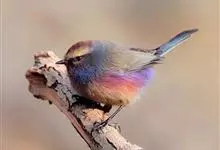 花彩雀莺:体长9-12厘米,是一种毛茸茸偏紫色的雀莺。顶冠棕色,眉纹白。尾长,羽毛松软。前额有一宽阔的眉纹淡黄色,头顶栗色或棕红色,有的具紫蓝色光泽。背灰色,腰和尾上覆羽辉紫蓝色,飞羽灰褐色。…全部>>