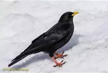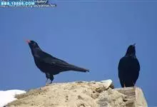红嘴山鸦,是脊索动物门鸟纲雀形目鸦科鸟类。红嘴山鸦的成鸟通体羽毛纯黑色具有蓝色金属光泽,翼和尾泛有蓝绿色金属光泽;虹膜暗褐色,喙较为尖细,并且呈镰状下弯,喙和脚朱红色。…全部>>