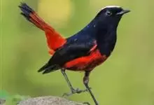 红头咬鹃: 体大,体长约33厘米,体重75-110克。头、颈暗绯红色;背、肩锈褐色。两翅黑色,翅上覆羽和内侧飞羽密被白色细虫蠹斑纹,初级飞羽黑色,外侧具白色羽缘;腰和尾上覆羽较多锈色。中央尾羽深栗色,…全部>>