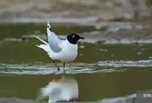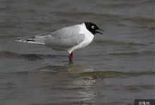 黑嘴鸥 中型水鸟,体长31~39厘米。嘴黑色,脚红色。夏羽头黑色,眼上和眼 下具白色星月形斑,在黑色的头上极为醒目。颈、腰、尾上覆羽、尾和下体白色。初级飞羽末端具黑色斑点。翼下仅部分初级飞羽黑色,与…全部>>