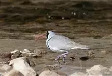 鹮嘴鹬体长40厘米,是一种灰、黑及白色鹬。识别特征为腿及嘴红色,嘴长且下弯。一道黑白色的横带将灰色的上胸与其白色的下部隔开。翼下白色,翼上中心具大片白色斑。幼鸟上体具皮黄色鳞状纹,黑色斑纹不甚清楚,…全部>>