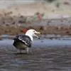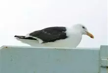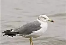 灰背鸥大型水鸟,体长62~69厘米。嘴直,黄色,下嘴先端有红色斑。脚粉红色,头、颈和下体白色,背、肩和翅黑灰色,腰,尾上覆羽和尾白色。冬季头和上胸有褐色纵纹,特别是眼周和后枕较密。飞翔时翅前后缘白色…全部>>