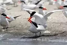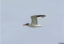 红嘴巨鸥,大型水鸟,体长47~55厘米。夏羽前额、头顶、枕和冠羽黑色。后颈、尾上覆羽和尾白色,尾呈叉状。背、肩和翅上覆羽银灰色。眼先和眼及耳羽以下头侧白色;颏、喉和整个下体也为白色。冬羽和夏羽大致相似,…全部>>