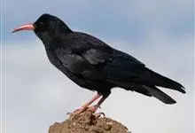 红嘴山鸦,是脊索动物门鸟纲雀形目鸦科鸟类。红嘴山鸦的成鸟通体羽毛纯黑色具有蓝色金属光泽,翼和尾泛有蓝绿色金属光泽;虹膜暗褐色,喙较为尖细,并且呈镰状下弯,喙和脚朱红色。…全部>>