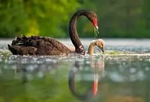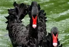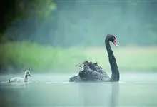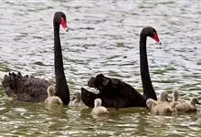 黑天鹅,是雁形目鸭科天鹅属鸟类动物。黑天鹅背覆花絮状灰羽;颈部细长,常弯曲成优雅的“S”形;喙鲜红色,前端有“V”形白带;虹膜赤红色,跗跖和蹼黑色。其体貌特征为全身除初级飞羽小部分为白色外,…全部>>