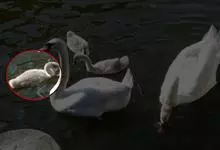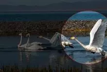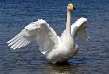 小天鹅为大型水禽,体长110~130厘米,体重4~7千克,雌鸟略小。它与大天鹅在体形上非常相似,同样是长长的脖颈,纯白的羽毛,黑色的脚和蹼,身体也只是稍稍小一些,颈部和嘴比大天鹅略短,但很难分辩。最…全部>>