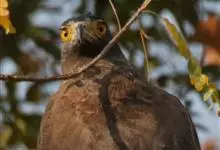 短趾雕:体长62-70厘米,体重1.2-2.3千克。它们的颔、颈和胸部上方呈浅棕色。头部浑圆像猫头鹰般,眼睛呈鲜黄色。身体沉重,上体灰褐,下体白而具深色纵纹,喉及胸单一褐色,腹部具不明显的横斑,…全部>>