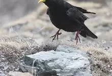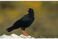 红嘴山鸦,是脊索动物门鸟纲雀形目鸦科鸟类。红嘴山鸦的成鸟通体羽毛纯黑色具有蓝色金属光泽,翼和尾泛有蓝绿色金属光泽;虹膜暗褐色,喙较为尖细,并且呈镰状下弯,喙和脚朱红色。…全部>>