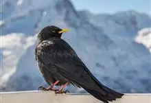 黄嘴山鸦是鸦科、山鸦属鸟类,体长38-42厘米。体形较细弱,黄色的嘴细而下弯,嘴亦较短。雌雄羽色相似。全身羽毛黑色沾褐具绿色金属光泽,尤以两翅和尾较明显。幼鸟腿灰色,嘴上黄色较少。…全部>>