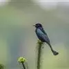 发冠卷尾是中型鸟类,体长28-35厘米。通体绒黑色缀蓝绿色金属光泽,额部具发丝状羽冠,外侧尾羽末端向上卷曲。栖息于海拔1500米以下的低山丘陵和山脚沟谷地带,多在常绿阔叶林、次生林或人工松林中活动。…全部>>