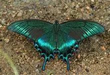 蓝凤蝶,Papilio protenor Cramer,凤蝶科凤蝶属的一种昆虫。翅展95~120mm。翅黑色,有靛蓝色天鹅绒光泽。雄蝶后翅正面前缘有黄白色斑纹,…全部>>