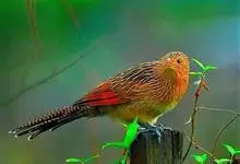 褐翅鸦鹃,是鹃形目鸦鹃科鸦鹃属的鸟类。褐翅鸦鹃的身体为黑色;头颈和胸带蓝紫色金属光泽并具黑亮的羽干纹,下胸至腹部泛金属绿光泽;两翼和肩部为棕栗色,外侧飞羽具暗色羽端,尾羽闪铜绿色光泽;虹膜赤红色,…全部>>