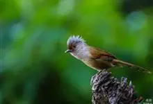 凤头雀莺:小型鸟类。体长9-10厘米,雄鸟呈毛茸茸的紫色和绛紫色,顶冠淡紫灰色,额及凤头白色,尾全蓝。雌鸟喉及上胸白,至臀部渐变成淡紫色,耳羽灰,…全部>>