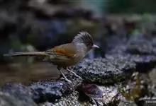 栗额斑翅鹛是噪眉科、斑翅鹛属中型鸟类,体长20-23厘米。头顶具浓密的羽冠,前额栗棕色,头顶灰褐色。上体棕褐色,两翅棕褐色具黑色横斑,翅基外缘有一黑斑,尾呈凸状,棕褐色具黑色横斑。下体棕褐色,…全部>>