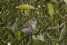 白喉林莺:体长10-13厘米,是一种类体型略小的莺鸟。喉白,上体灰褐或沙褐色,头顶较灰,贯眼纹黑褐或暗褐色。下体污白。耳羽深黑灰,胸侧及两胁沾皮黄色、褐色或淡粉红色。外侧尾羽羽缘白色。…全部>>