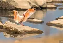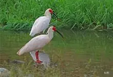朱鹮是鹈形目鹮科朱鹮属的鸟类动物。其雄鸟通体白色,羽干及两翅与尾等均沾染粉红色;颈项上有很多长矛状羽毛,形成羽冠,耸立时非常夺目;嘴长而向下曲,呈黑色,先端朱红,脚的裸露部分亦呈亮红色。雌鸟羽色略同,…全部>>