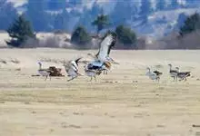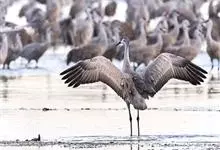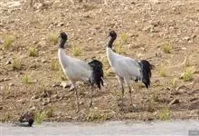 黑颈鹤:是鹤科、鹤属的大型涉禽,体长110-120厘米,体重4-6千克。颈、脚甚长,通体羽毛灰白色,头部、前颈及飞羽黑色,眼先和头顶前方裸露的皮肤呈暗红色,尾羽褐黑色。头顶,三级飞羽的羽片分散,…全部>>