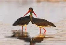 黑鹳是鹳形目鹳科鹳属鸟类,俗称乌鹳、钢鹳、老鹤。黑鹳头、颈和脊均呈黑褐色,故名黑鹳。黑鹳上体羽黑色、并带有绿紫色金属光泽,胸腹部羽白色;嘴、腿均红色;两性相似;成鸟嘴长而直,基部较粗,…全部>>