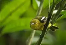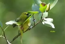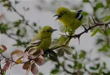 黑翅雀鹎:体重14-19克,体长11.5-16厘米。是树栖性绿色小鸟,外形与叶鹎相似,下体黄色。鸟喙直,翼长而尖,总体羽毛是绿色和黄色相结合,翼上具两道明显近白色横纹,翼近黑而羽缘白。…全部>>