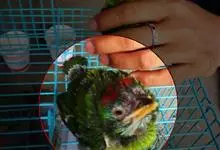 鹰头鹦鹉:鹰头鹦鹉体长35厘米,体重190-277克。额头和顶冠具柔和的白色,眼先深褐色,枕部和头部两侧有棕色羽毛,并具有柔软的白色条纹, 后颈有长长的暗红色羽毛并镶有蓝边,有2个亚种,是典型的攀禽,…全部>>