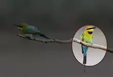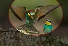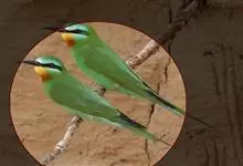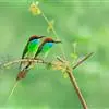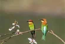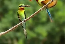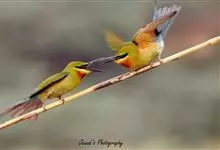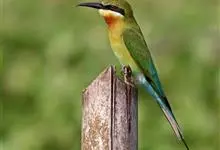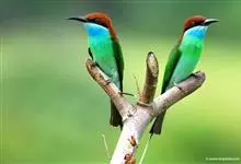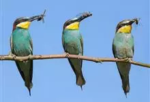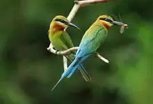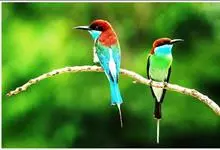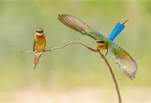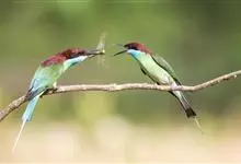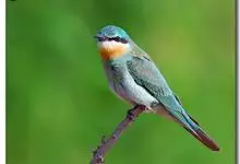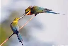 蓝颊蜂虎:是蜂虎科、蜂虎属的鸟类,共有2个亚种。体长27-33厘米,翼展46-49厘米,体重38-50克。嘴形细长而下弯,先端尖,…全部>>